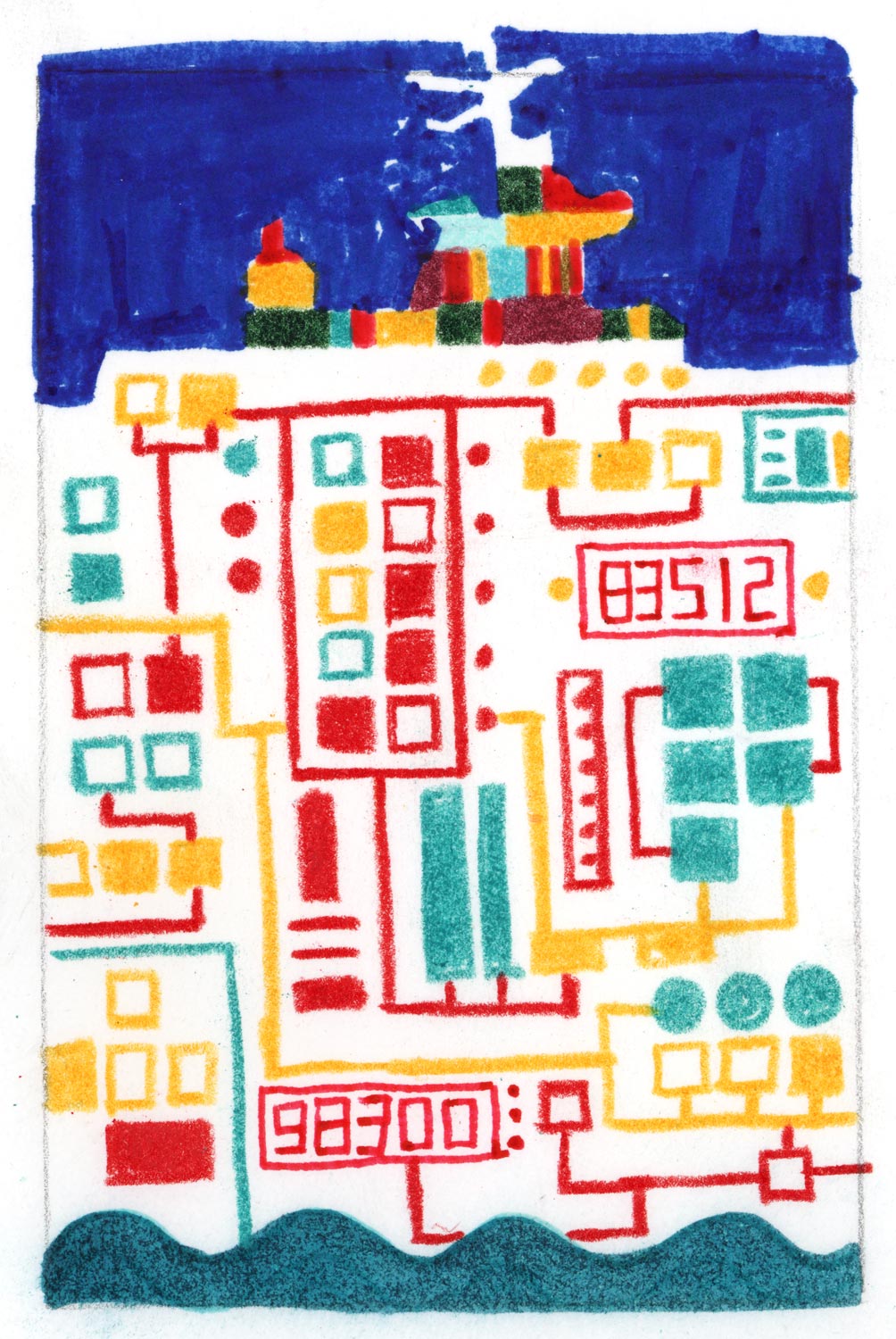 marker and colored pencil on paper