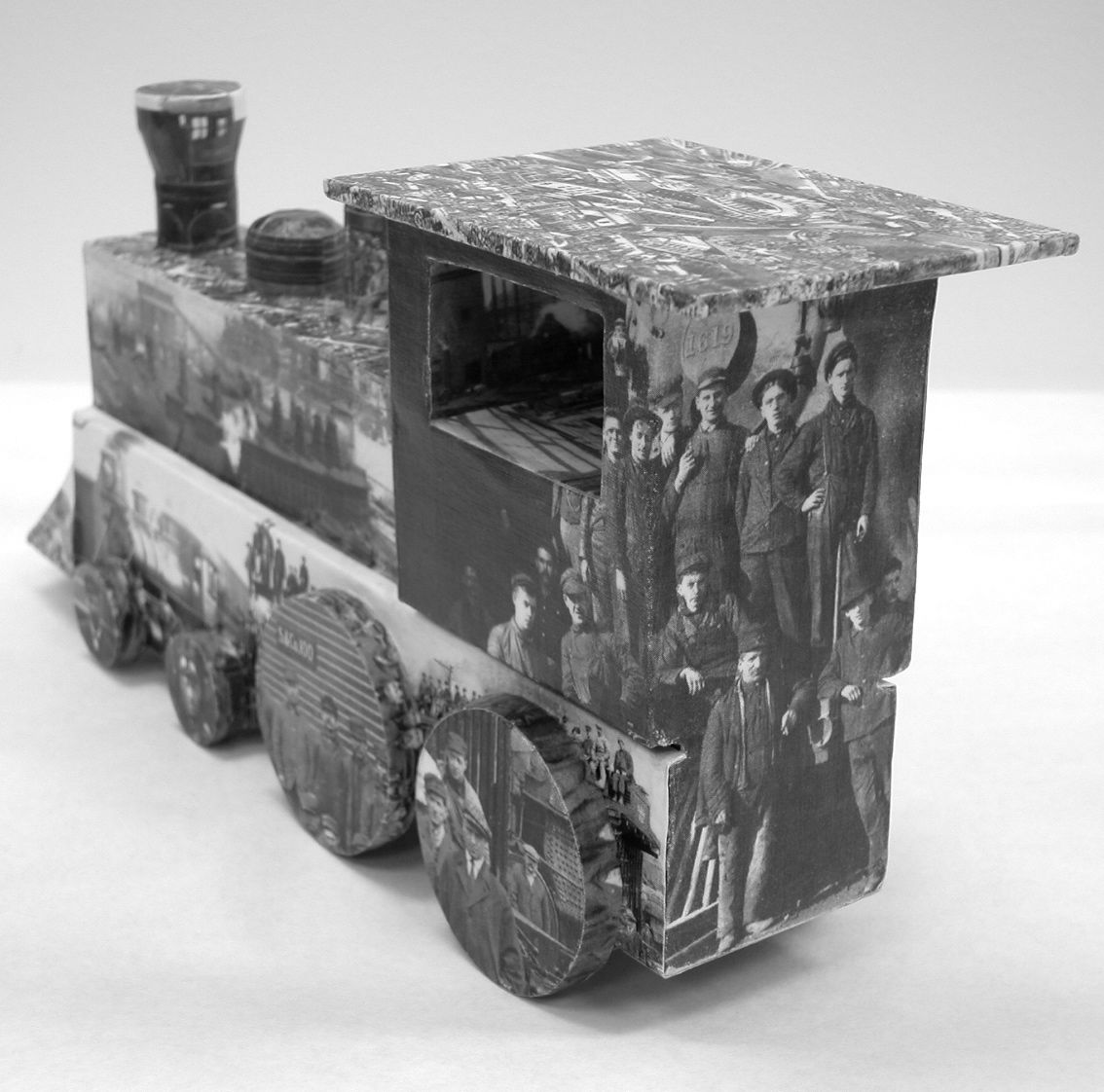printed paper and glue on wood